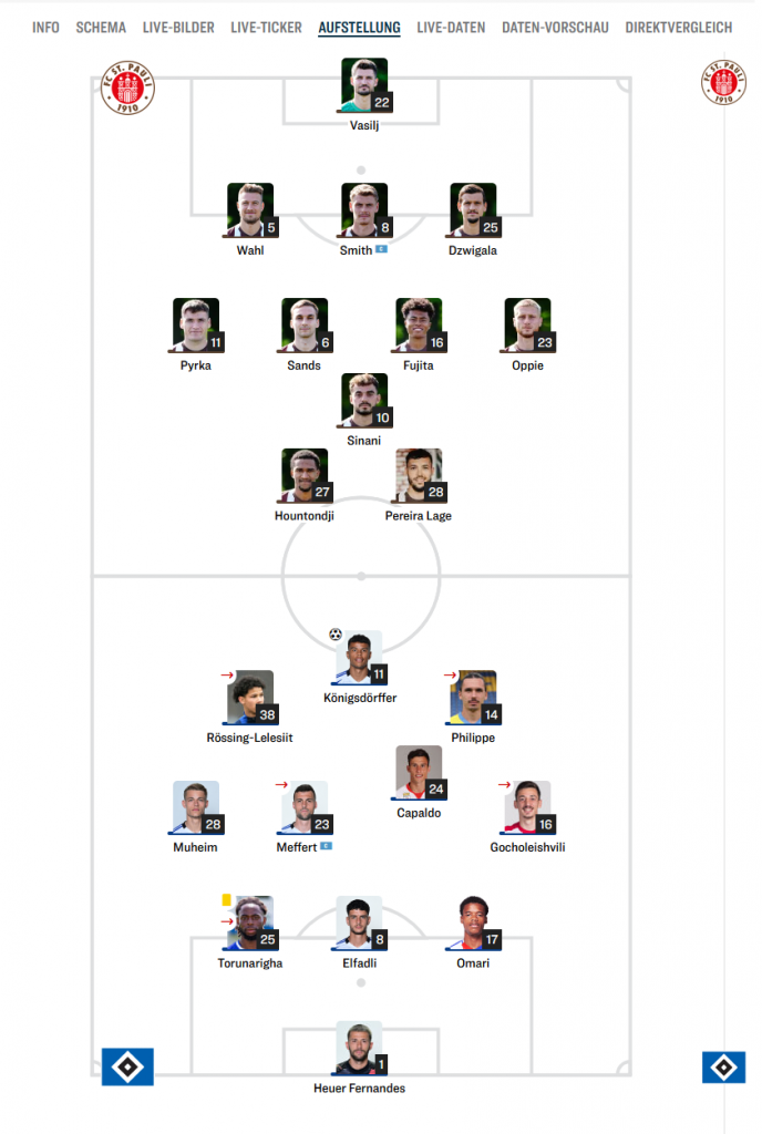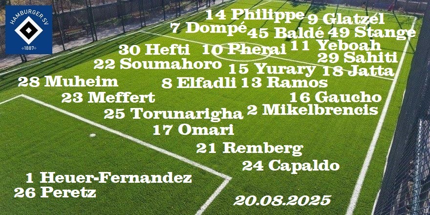 Ersatzbank:: 26 Peretz, 4 Schonlau, 13 Ramos, 2, Mikelbrencis, 22 Soumahoro, 21 Remberg, 45 Balde,