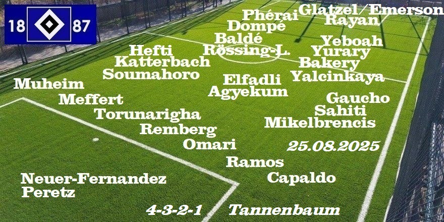 Der HSV Kader: 22 Spieler im 4-3-2-1 / 4-3-1-2 „Tannenbaum„
