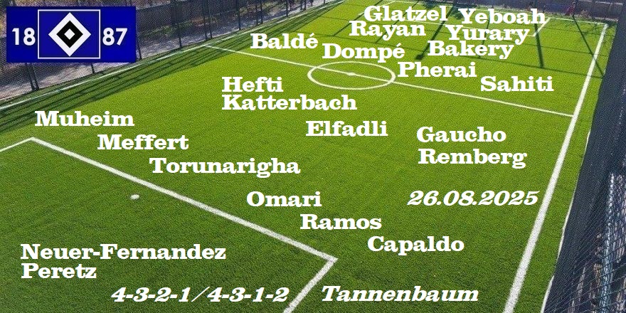 Der HSV Kader: 22 Spieler im 4-3-2-1 / 4-3-1-2 „Tannenbaum„