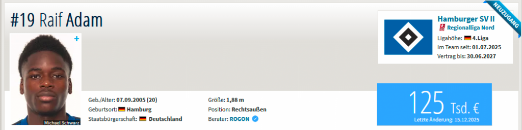 Kapitän bei dieser Aufstellung ist Jonas Meffert, HSV seit 07/2021!