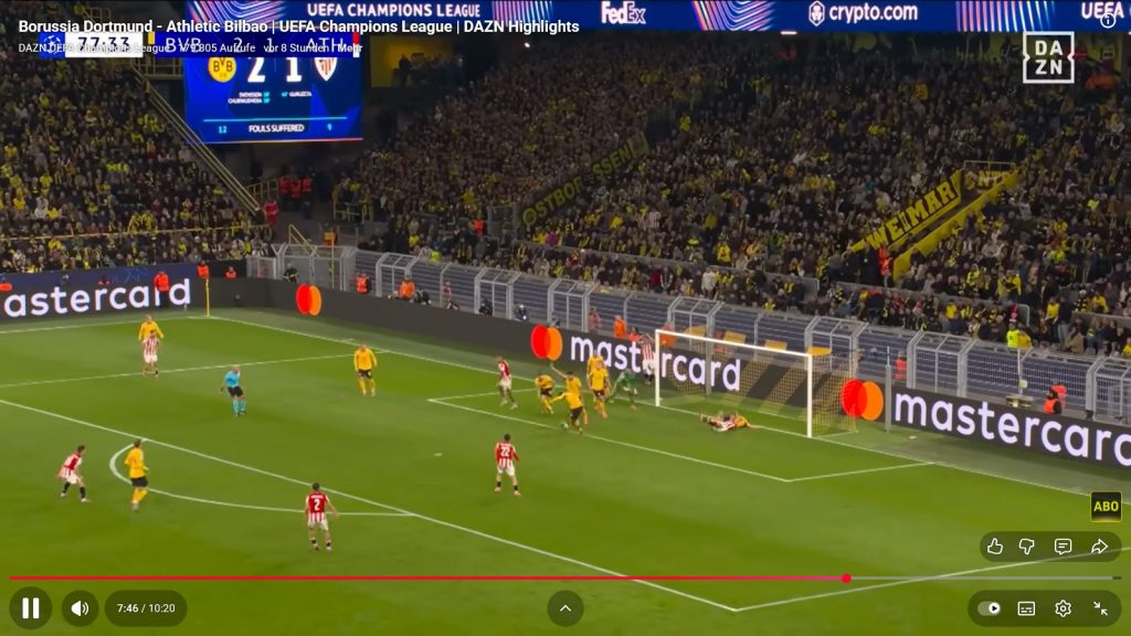 Vielleicht wäre im Nachhinein der Pass in den Rückraum auf den eigentlich sonst bereits am Elfmeterpunkt wartenden Mittelfeldspieler erfolgreicher, aber dieser Angriff wäre an sich der sichere Ausgleich zum 2:2 für Athletico Bilbao gewesen.