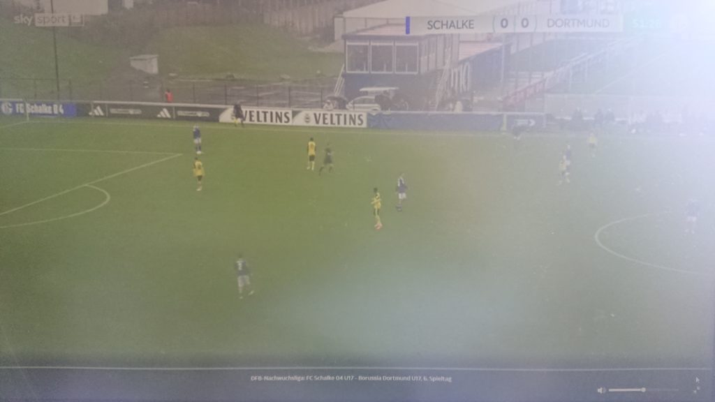 Zwei Spieler Athleticos setzen sich auf der Außenposition gegen 4 Dortmunder durch, darunter bereits der rechte Verteidiger der 3er Kette, der sonst nichts zu tun gehabt hätte (-> komme ich drauf zurück). Im Strafraum warten Stürmer & hängende Spitze gegen 2 BVB-Verteidiger, am 16er wartet der 2. Flügelspieler.